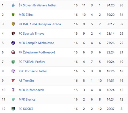 13. kolo: Slovan Bratislava-Prešov 0:1, Ružomberok-Trnava 1:1, Košice-Podbrezová 2:4, Trenčín-Komárno 0:1, Žilina-Skalica 3:2, Michalovce-Dunajská Streda 2:4.