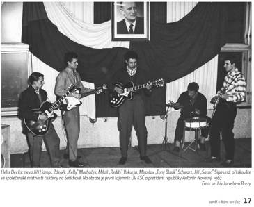 dobovou fotografii skupiny z roku 1962. Podrobnosti o skupině zaznamenal