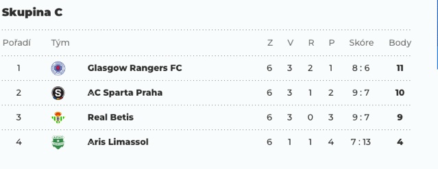 O branky v prvním poločase se postarali Jan Kuchta a dvakrát skóroval Veljko Birmančević. Teprve šest minut před koncem utkání dal jediný gól domácích Bengtsson. Jednalo se o první vítězství Sparty venku v pohárech od roku 2020. V druhém utkání Real Betis prohrál s Glasgowem Rangers 2:3 a sestoupil do Konferenční ligy.