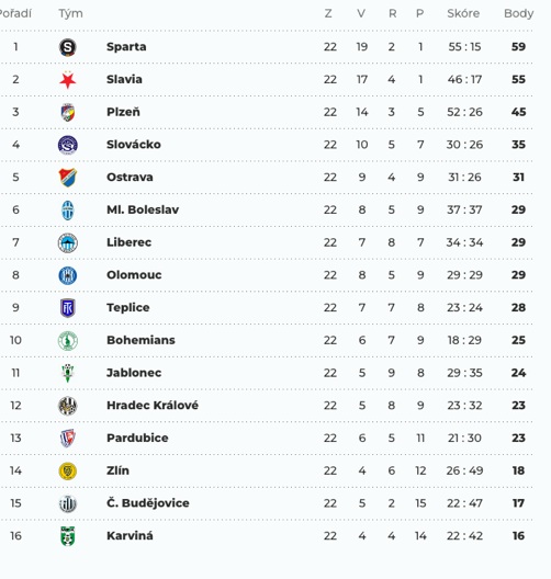 Slavia-Sparta 2:3 (2:2, 1:0)